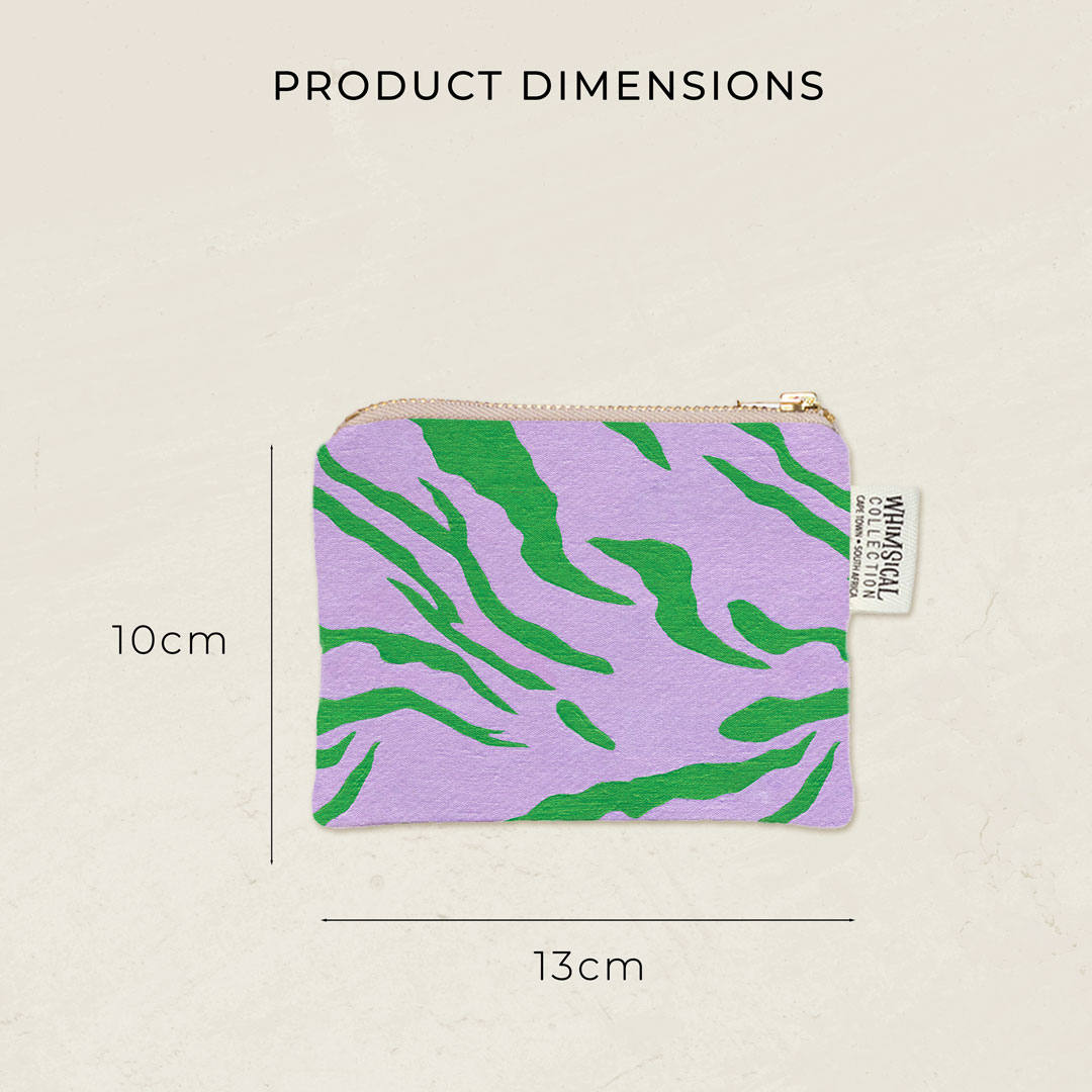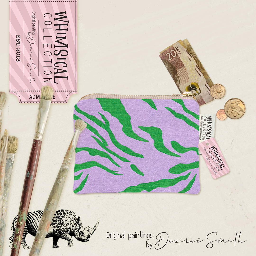 Microfibre coin purse featuring 'Aardwolf Dazzle' from Whimsical Collection's 'African Dazzle' range. The original painting was done in acrylic on linen by South African artist Dezireë Smith. Our 'African Dazzle' products are produced from a roll of fabric and as a result, no two products are identical.