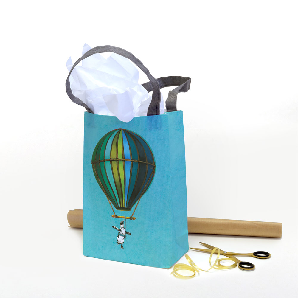 Blue Penguin in Flight Recycled Gift Bag