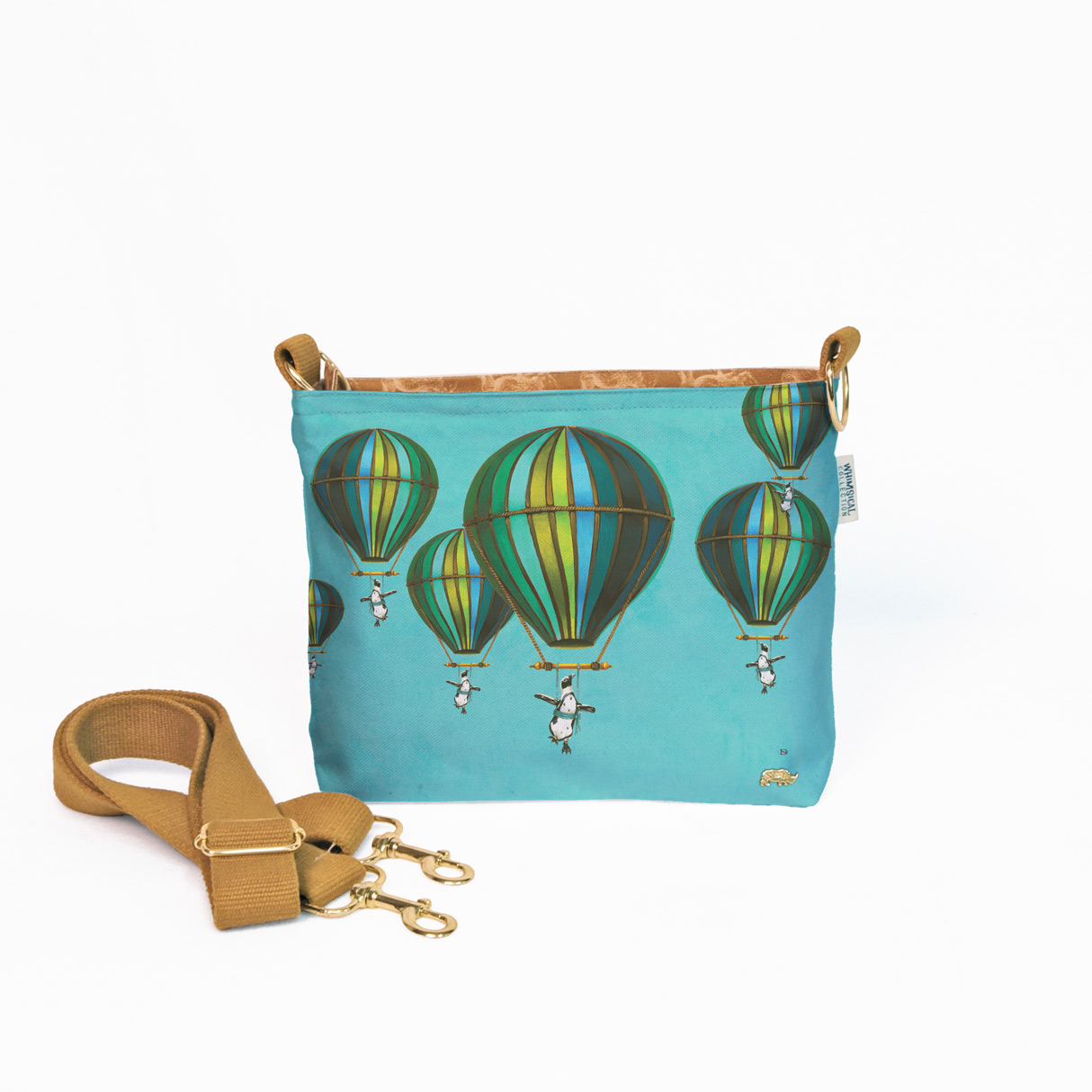 Crossbody sling bag with waterproof lining and detachable strap.