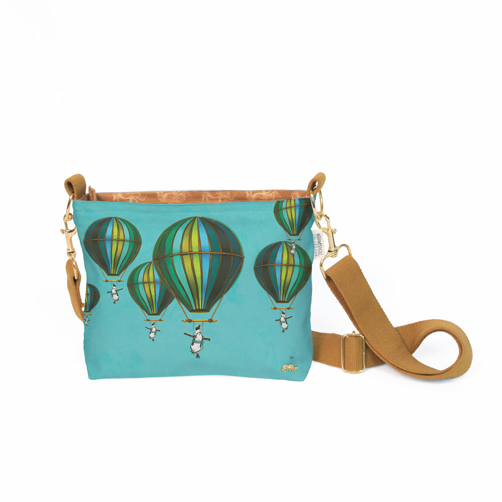 Blue Penguin in Flight Sling Bag