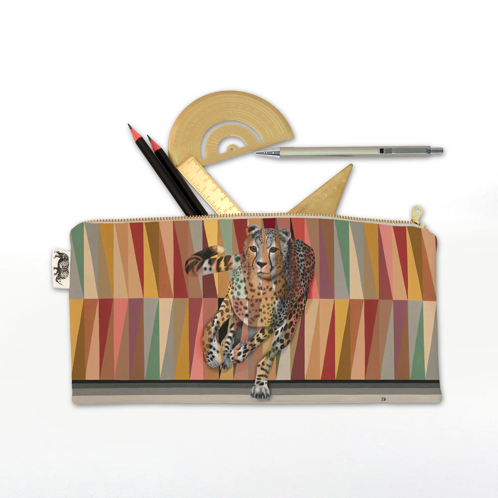 100% Cotton pencil case featuring 'Cheetah in Shades of Africa' from the 'Shades of Africa' range by Whimsical Collection. The Shades of Africa range is a colour adaptation of the original 'Wildlife in Colour' paintings done in oils on canvas by South African artist Dezireë Smith.