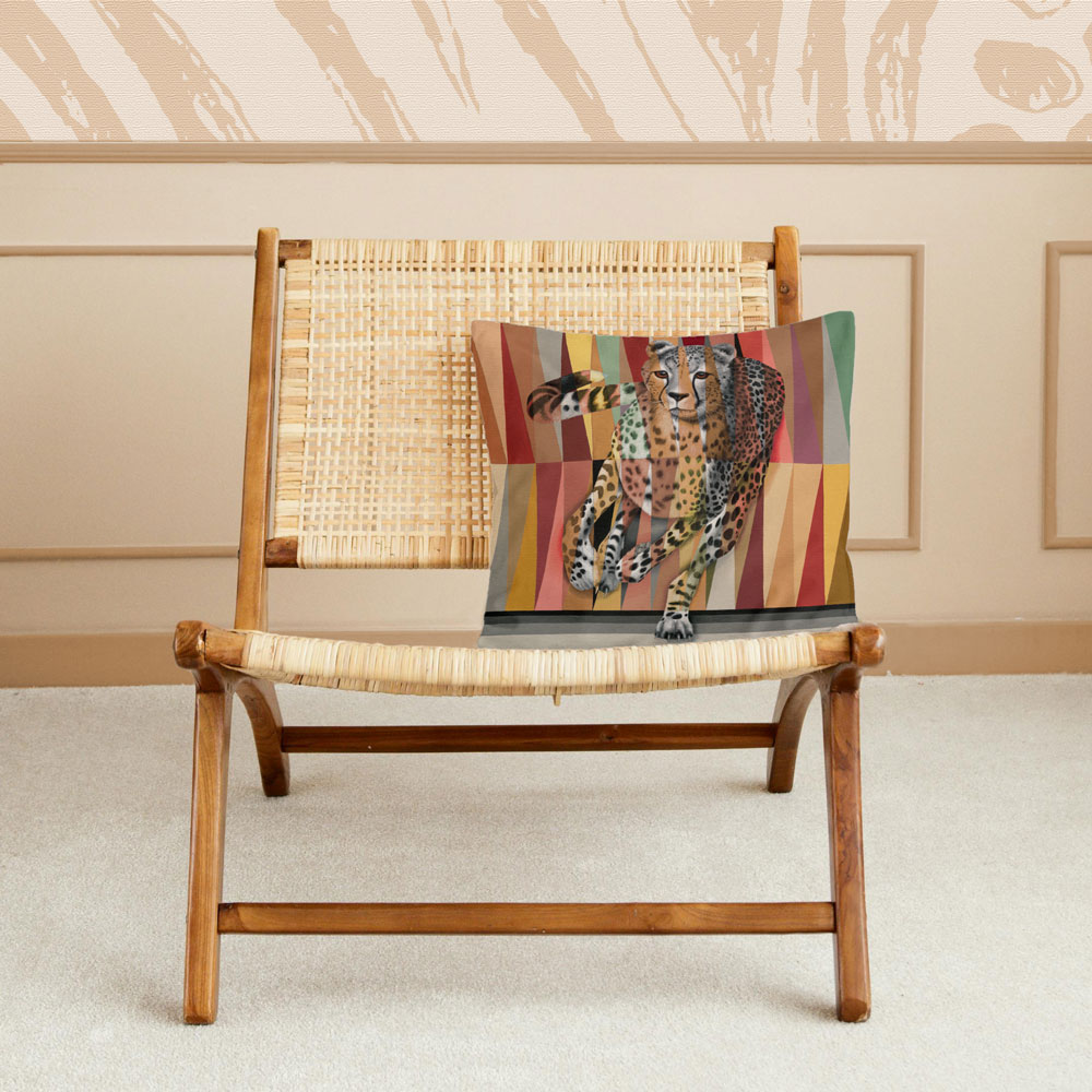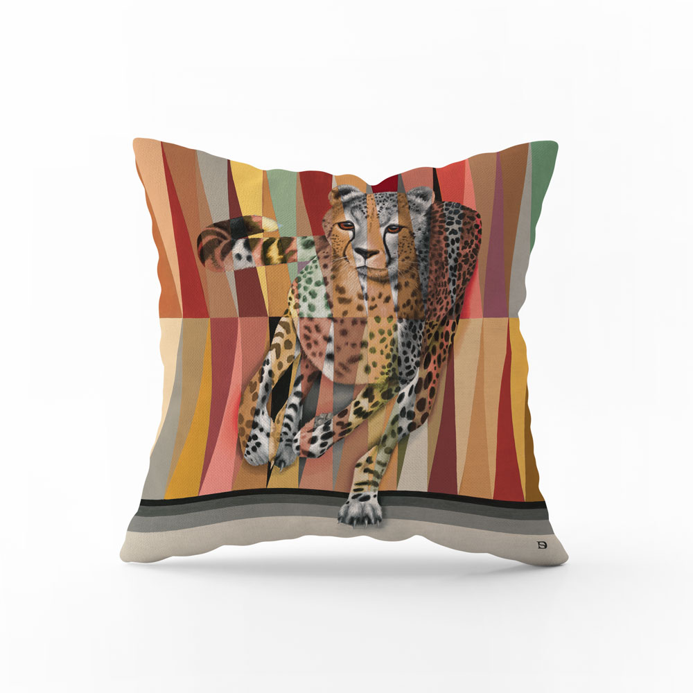 100% Cotton pillow cover featuring the cheetah design from the 'Shades of Africa' range by Whimsical Collection. The Shades of Africa range is a colour adaptation of the original 'Wildlife in Colour' paintings done in oils on canvas by South African artist Dezireë Smith.