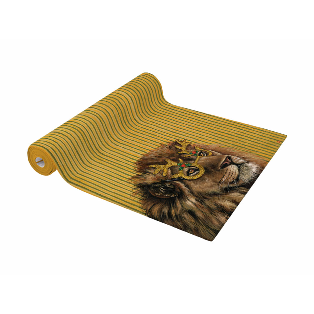 100% Cotton table runner featuring 'Festive Lion' from the 'Festive Party' range by Whimsical Collection. The original painting was done in oils on canvas by South African artist Dezireë Smith.