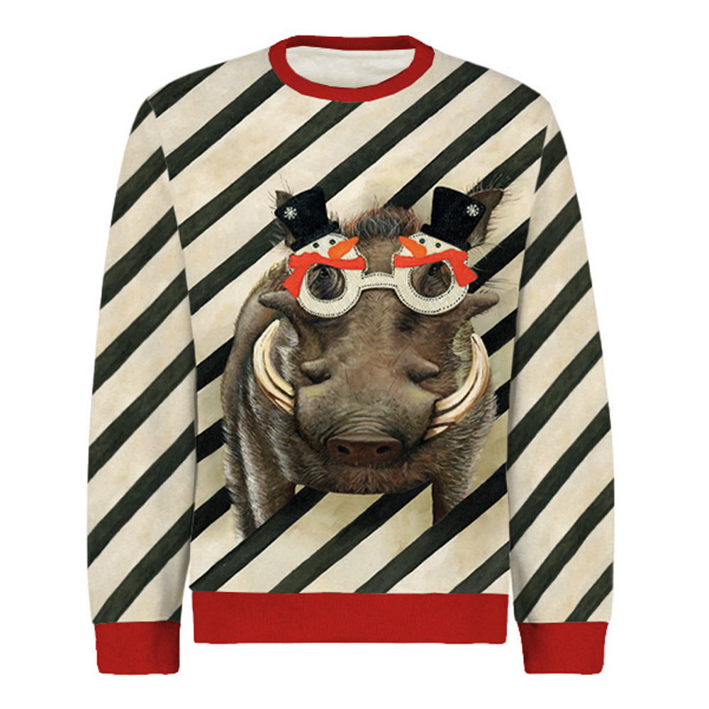 Whimsical Collection brings you a Christmas sweater with a quirky African twist! Available in adult sizes, our 'Festive Warthog' sweater is made of a cosy softshell fabric and features an original painting by artist Dezireë Smith. There are eight whimsical designs to choose from in the 'Festive Party' range, so that every family member can bring the fun to your holiday party in a festive-themed sweater.