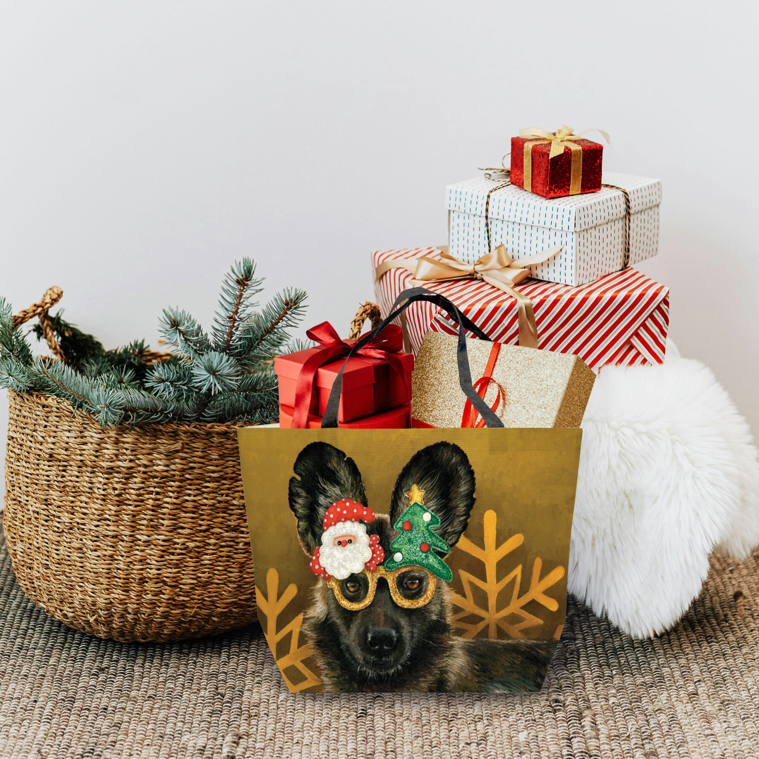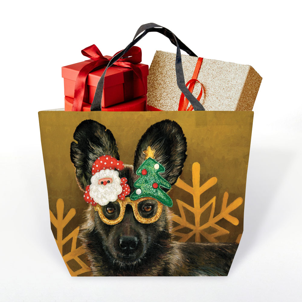 20L Shopping bag made from recycled fabric featuring 'Festive Wild Dog' from Whimsical Collection's 'Festive Party' range.  The original painting was done in oils on canvas by South African artist Dezireë Smith.