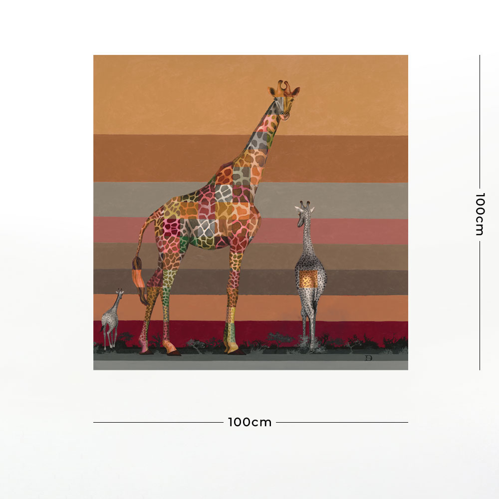 100% Cotton canvas art print featuring the 'Giraffe in Shades of Africa' painting by South African artist Dezireë Smith. The Shades of Africa range is a colour adaptation of the original 'Wildlife in Colour' paintings done in oils on canvas by South African artist Dezireë Smith.