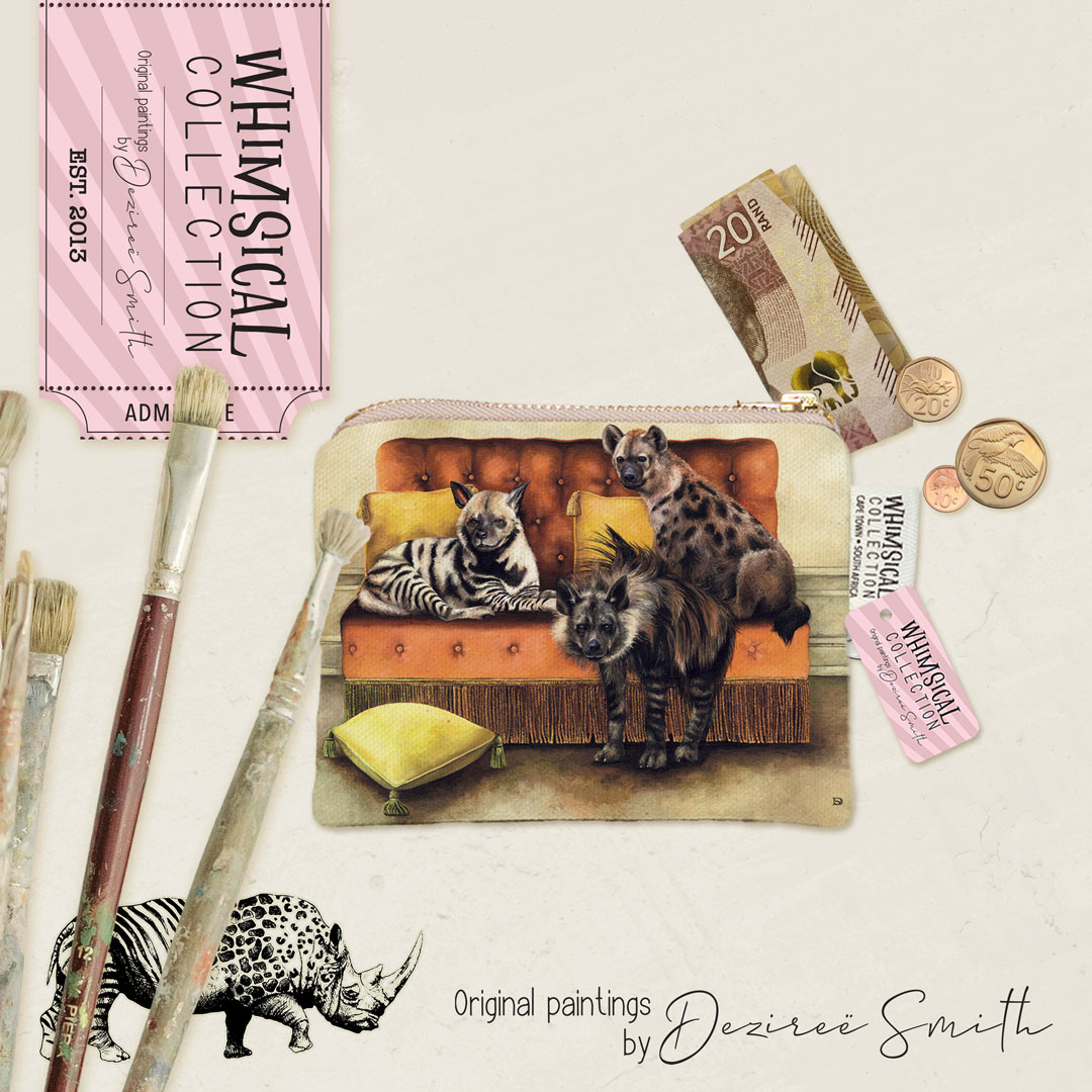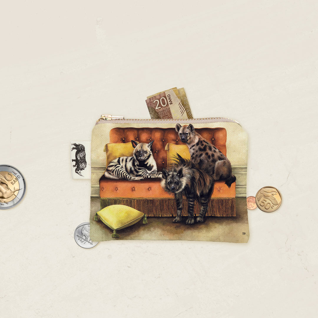 Design: Hyena at Leisure – three African hyenas on an orange couch