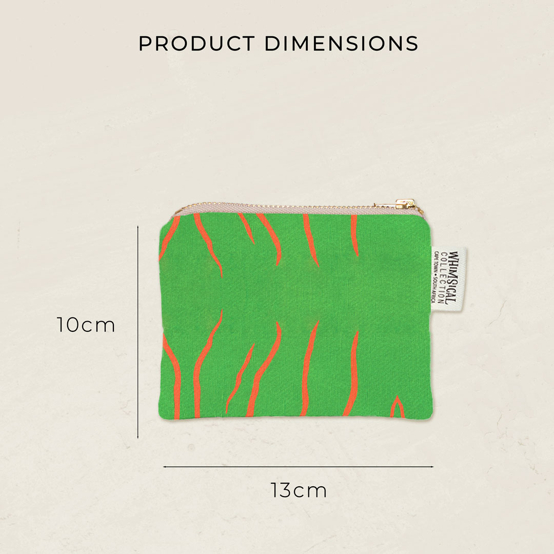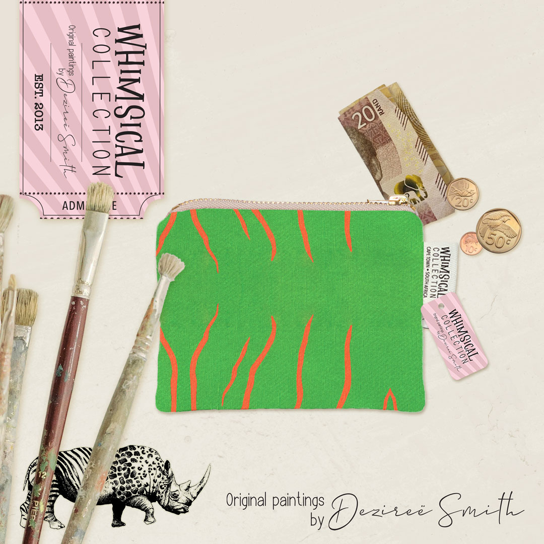Microfibre coin purse featuring 'Kudu Dazzle' from Whimsical Collection's 'African Dazzle' range. The original painting was done in acrylic on linen by South African artist Dezireë Smith. Our 'African Dazzle' products are produced from a roll of fabric and as a result, no two products are identical.