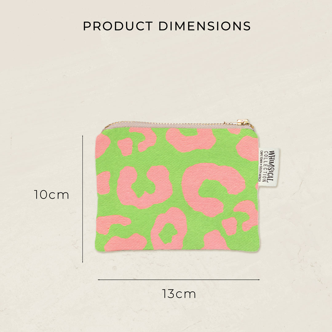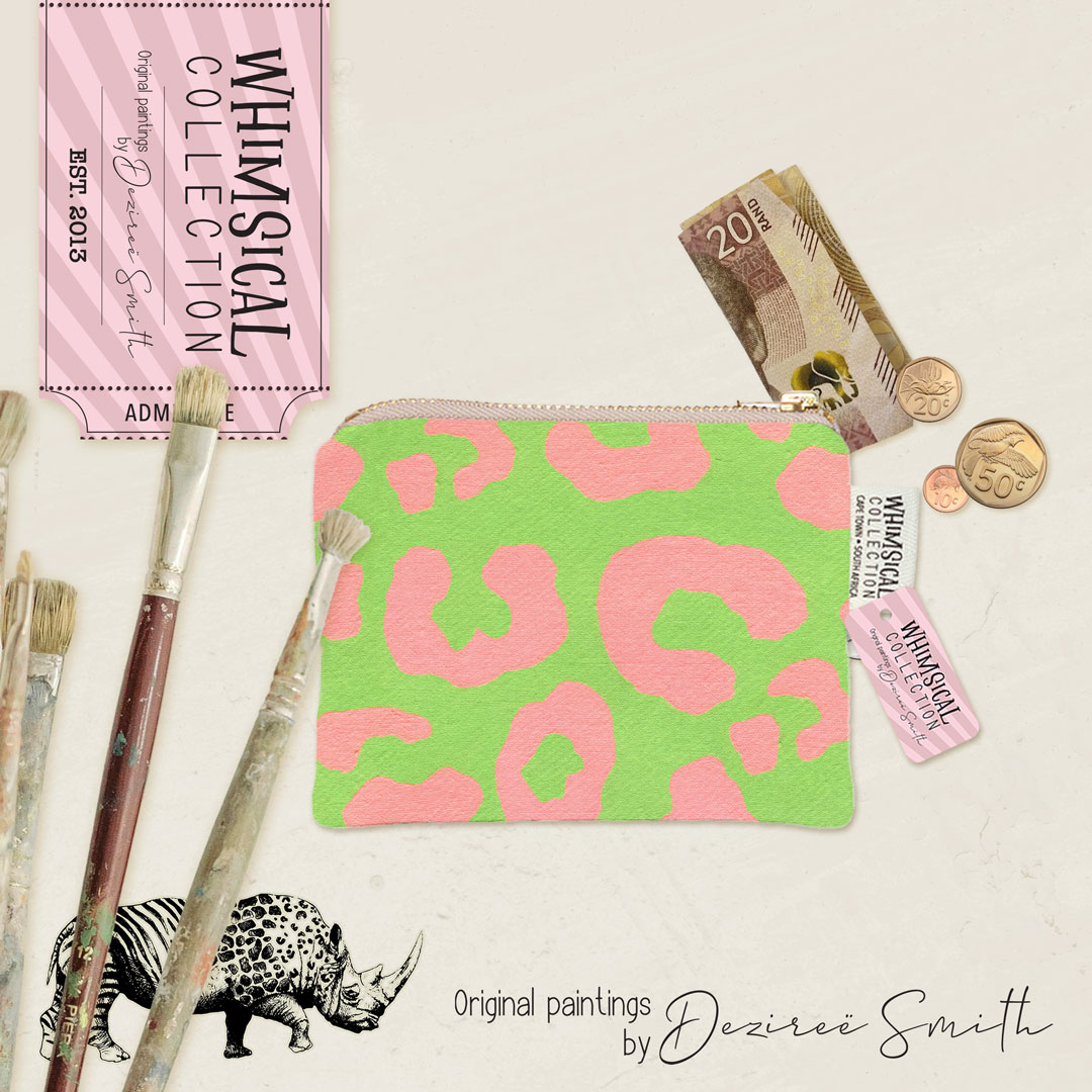 Microfibre coin purse featuring 'Leopard Dazzle' from Whimsical Collection's 'African Dazzle' range. The original painting was done in acrylic on linen by South African artist Dezireë Smith. Our 'African Dazzle' products are produced from a roll of fabric and as a result, no two products are identical.