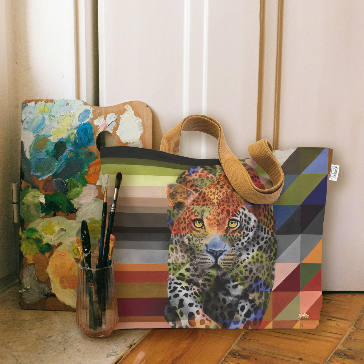 100% Cotton canvas tote bag featuring 'Leopard in Shades of Africa' from the 'Shades of Africa' range. The Shades of Africa range is a colour adaptation of the original 'Wildlife in Colour' paintings done in oils on canvas by South African artist Dezireë Smith.