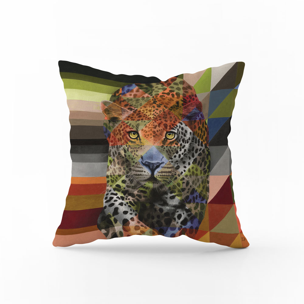 100% Cotton pillow cover featuring the leopard design from the 'Shades of Africa' range by Whimsical Collection. The Shades of Africa range is a colour adaptation of the original 'Wildlife in Colour' paintings done in oils on canvas by South African artist Dezireë Smith.