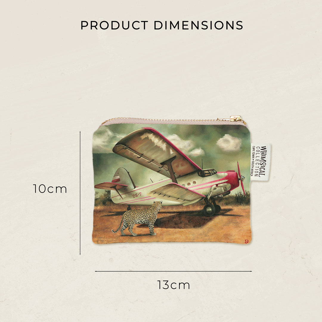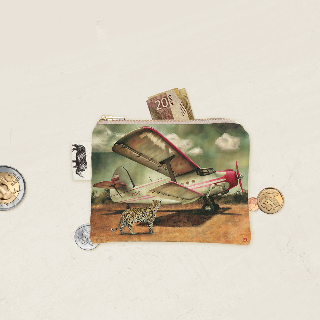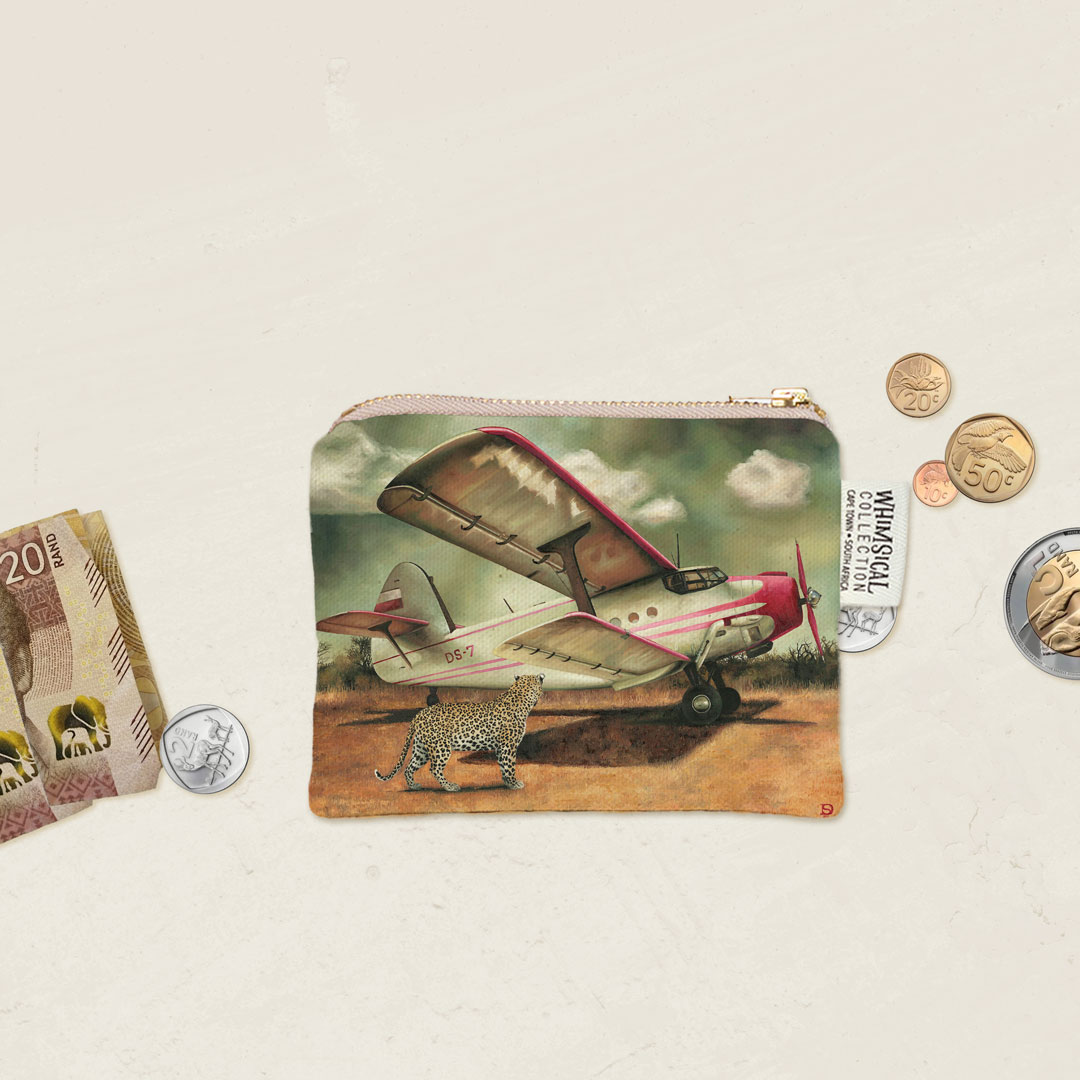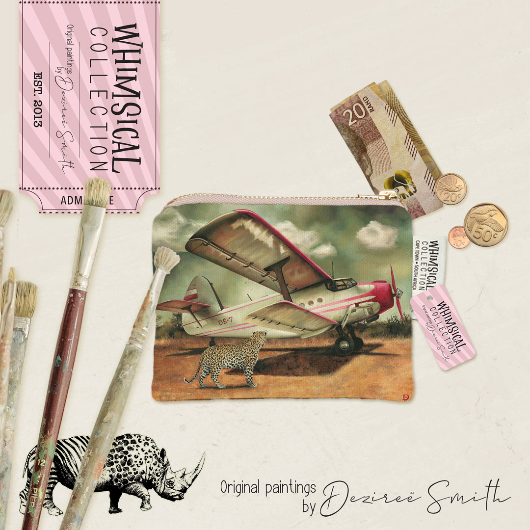 100% Cotton coin purse featuring 'Leopard Voyage' from Whimsical Collection's 'African Voyage' range. The original painting was done in oils on canvas by South African artist Dezireë Smith.