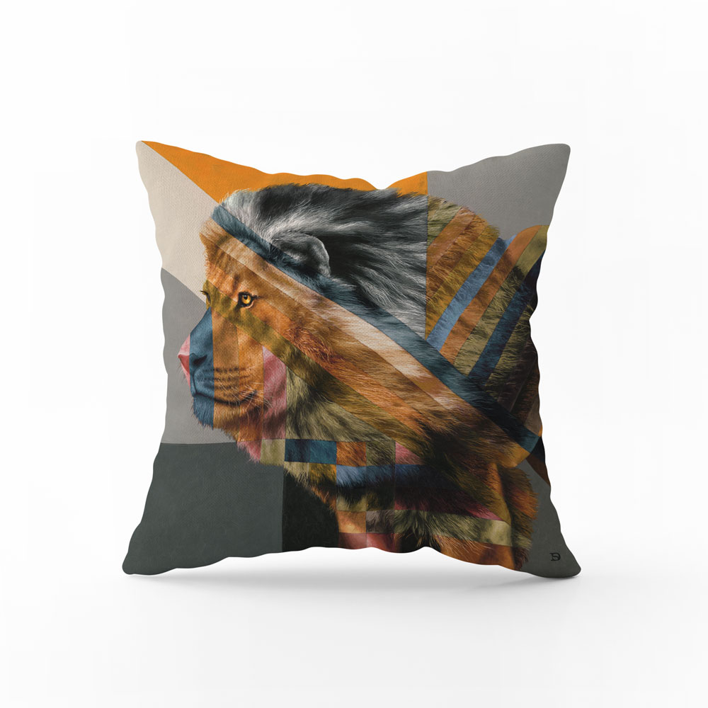 100% Cotton pillow cover featuring the lion design from the 'Shades of Africa' range by Whimsical Collection. The Shades of Africa range is a colour adaptation of the original 'Wildlife in Colour' paintings done in oils on canvas by South African artist Dezireë Smith.