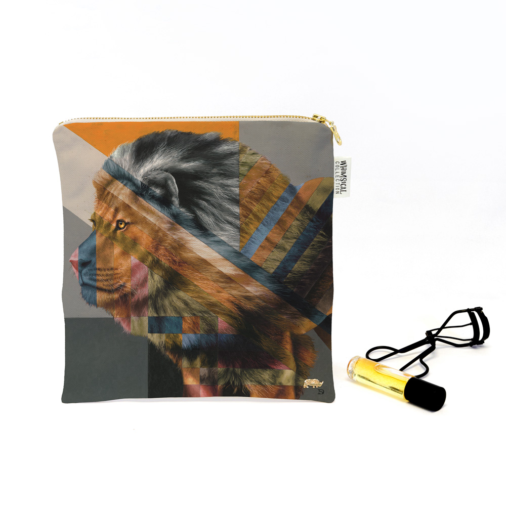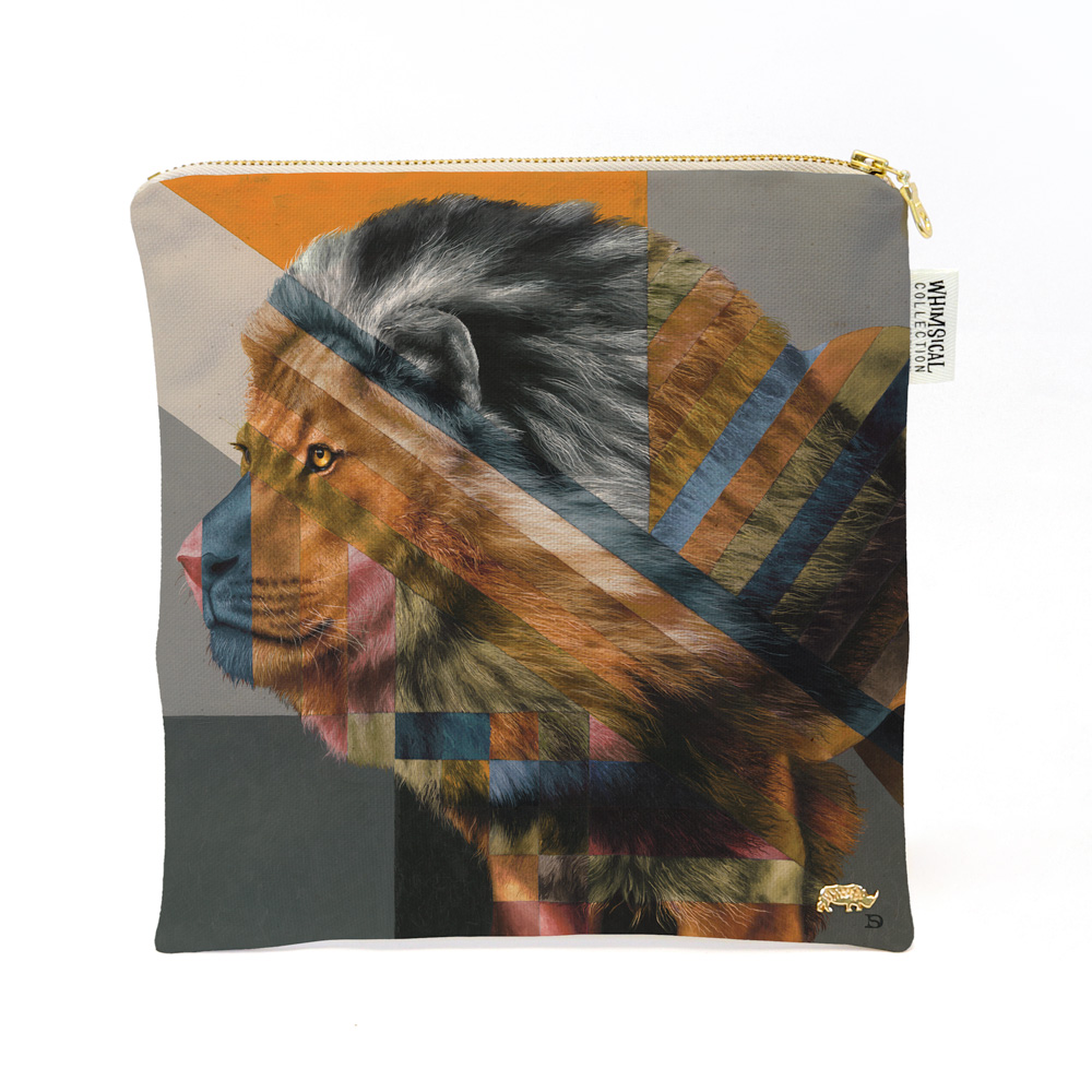 100% Cotton cosmetics purse featuring 'Lion in Shades of Africa' from Whimsical Collection's 'Shades of Africa' range. The Shades of Africa range is a colour adaptation of the original 'Wildlife in Colour' paintings done in oils on canvas by South African artist Dezireë Smith.