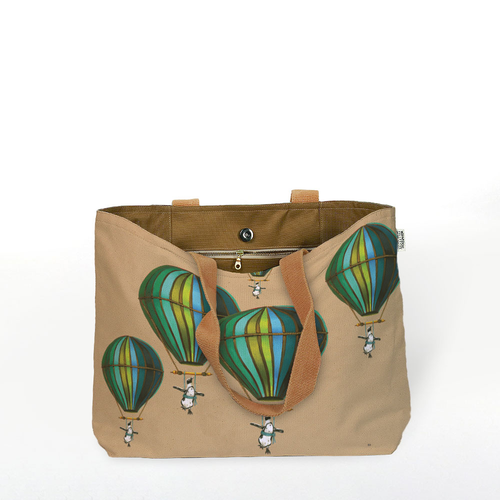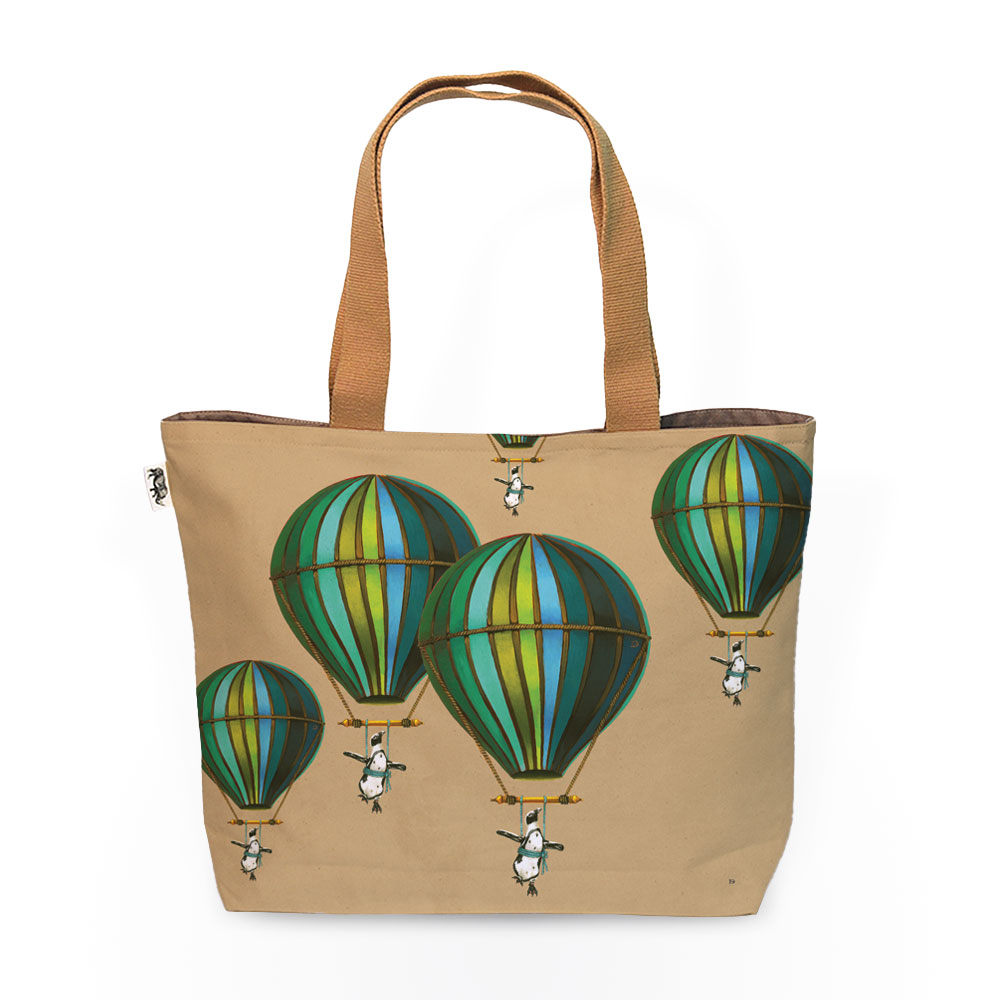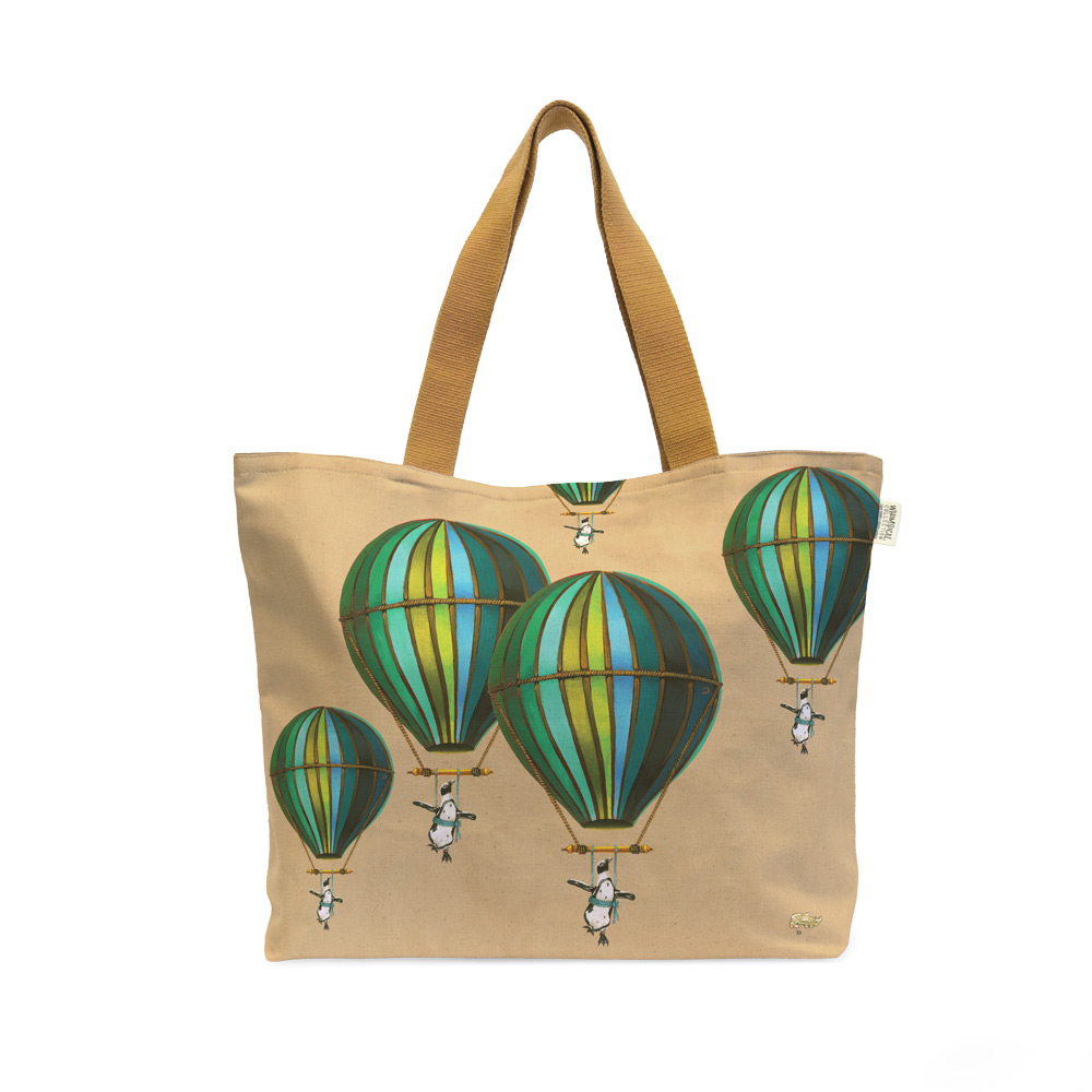 Muted Blue Penguin in Flight Canvas Bag
