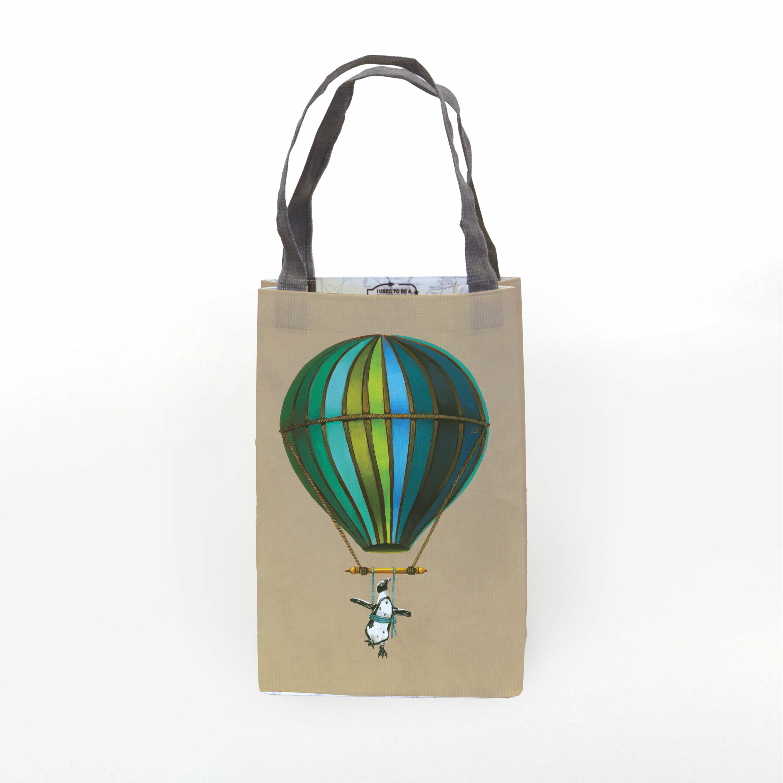 Muted Blue Penguin in Flight Recycled Gift Bag