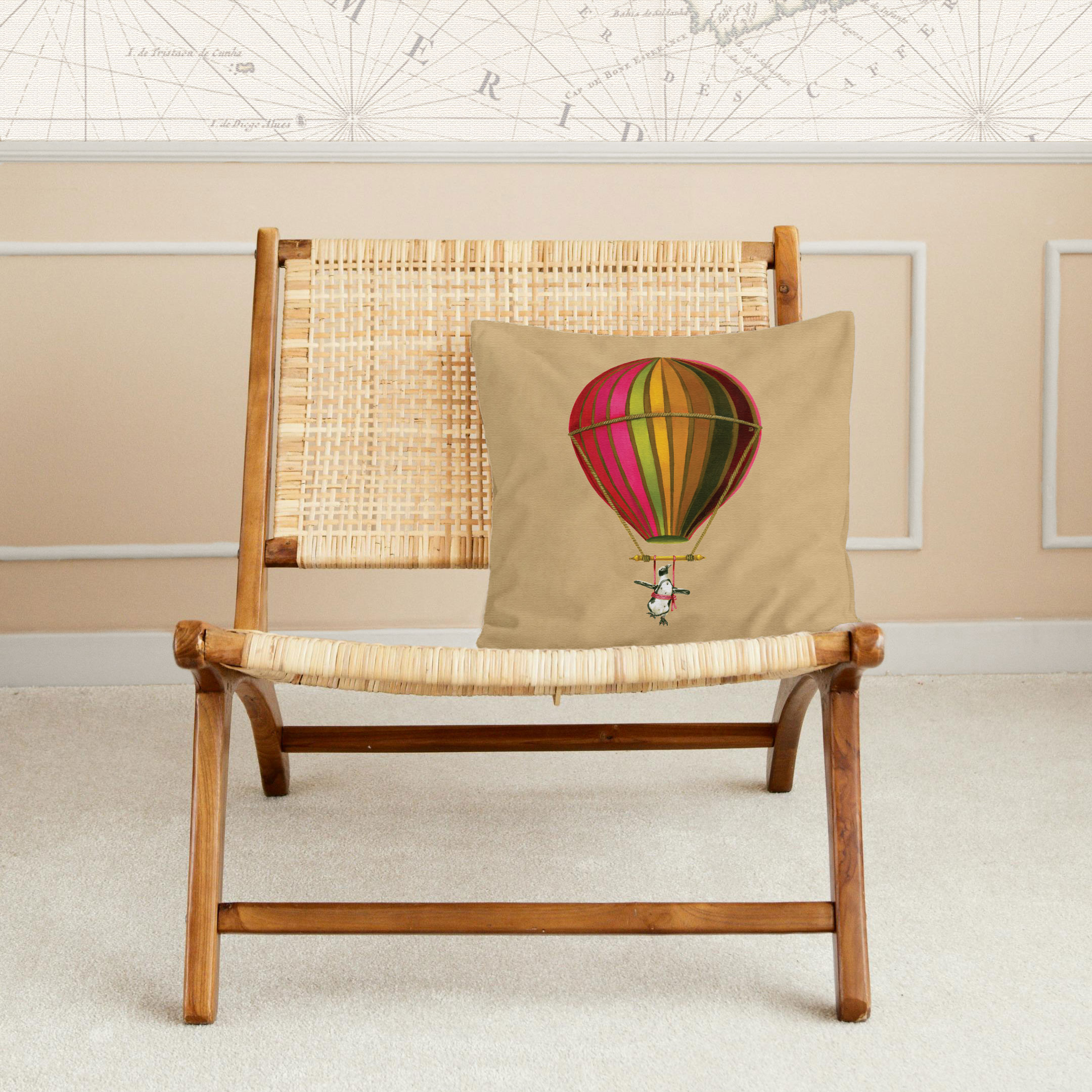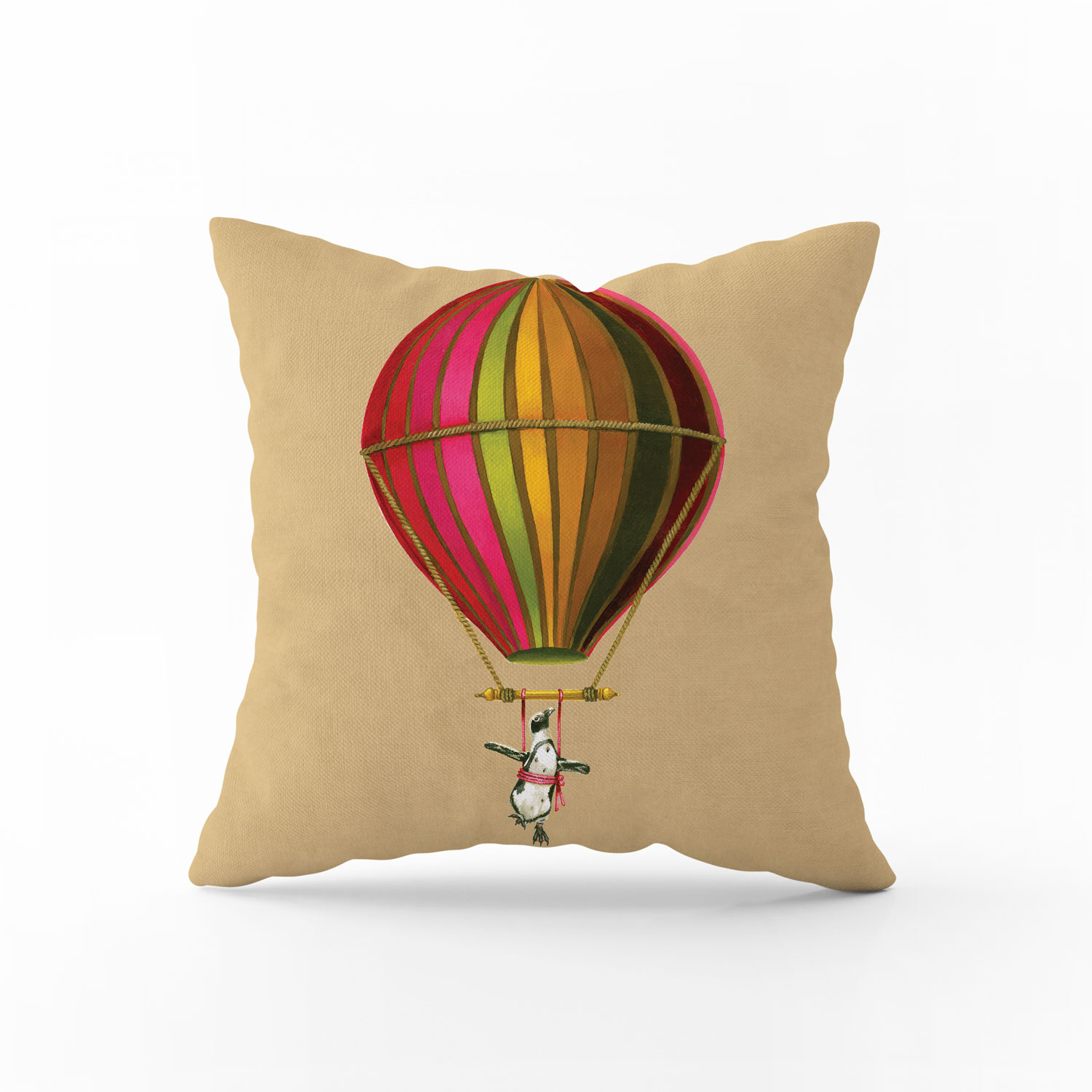 100% Cotton pillow cover featuring the 'Muted Pink Penguin in Flight' from the 'Wildlife in Flight' range by Whimsical Collection. The original 'Penguin in Flight' artwork was painted on paper by South African artist Dezireë Smith.