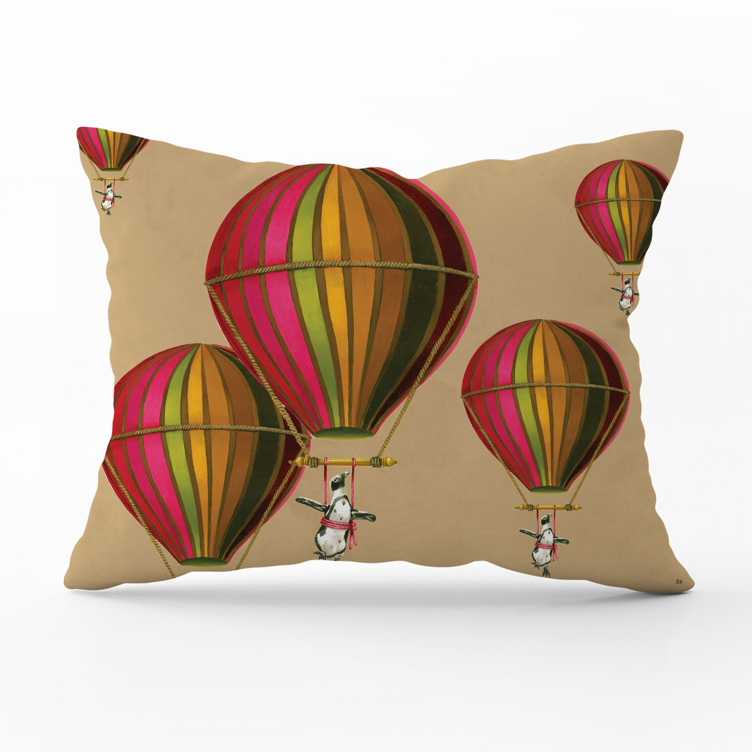 Muted Pink Penguin in Flight Pillow Cover