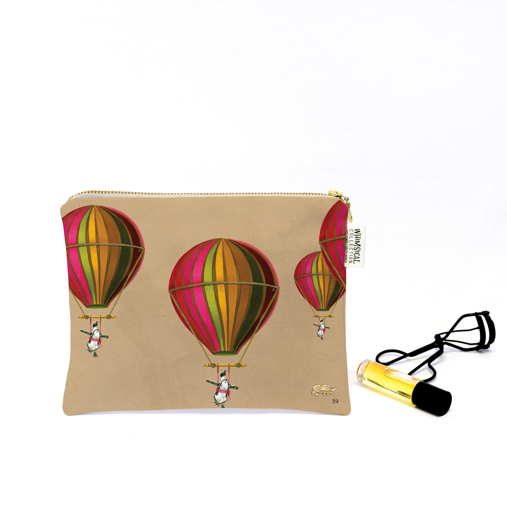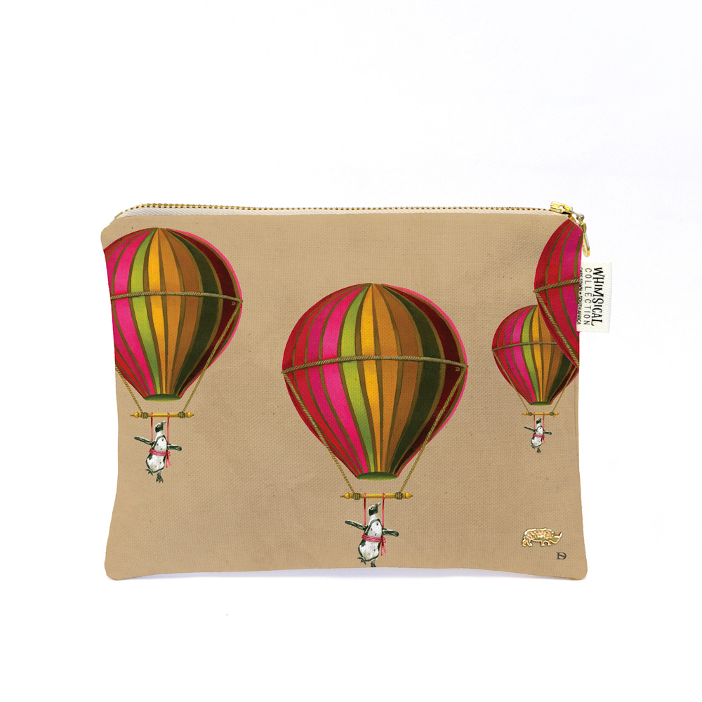 Muted Pink Penguin in Flight Small Zip Bag