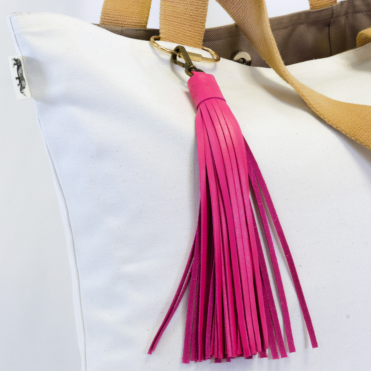 25cm long 'Cerise' full-grain leather statement tassel with antique brass swivel lobster clasp. Our Whimsical Collection Supreme Luxe leather tassels are the perfect luxury handbag accessory and can also be added to a keychain.