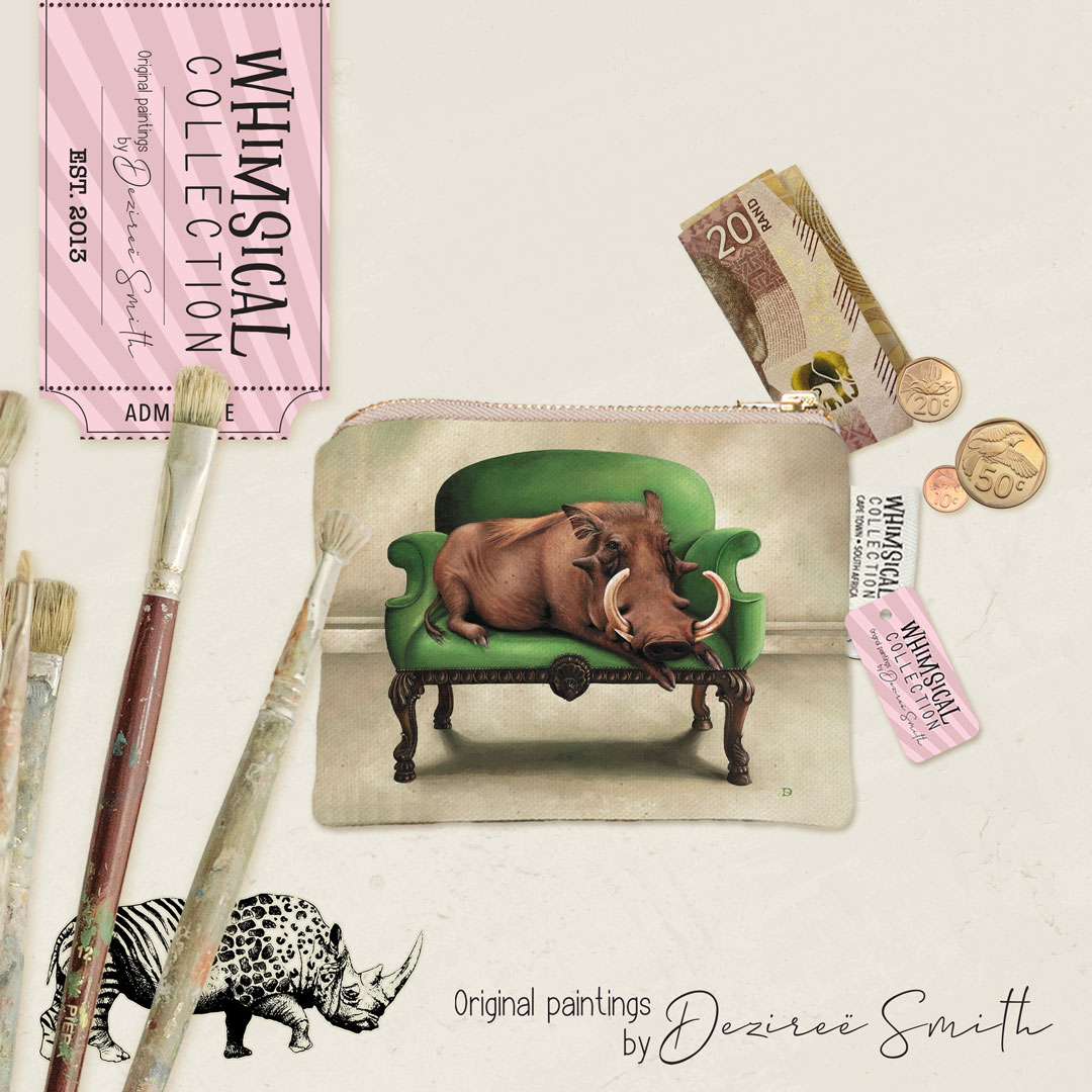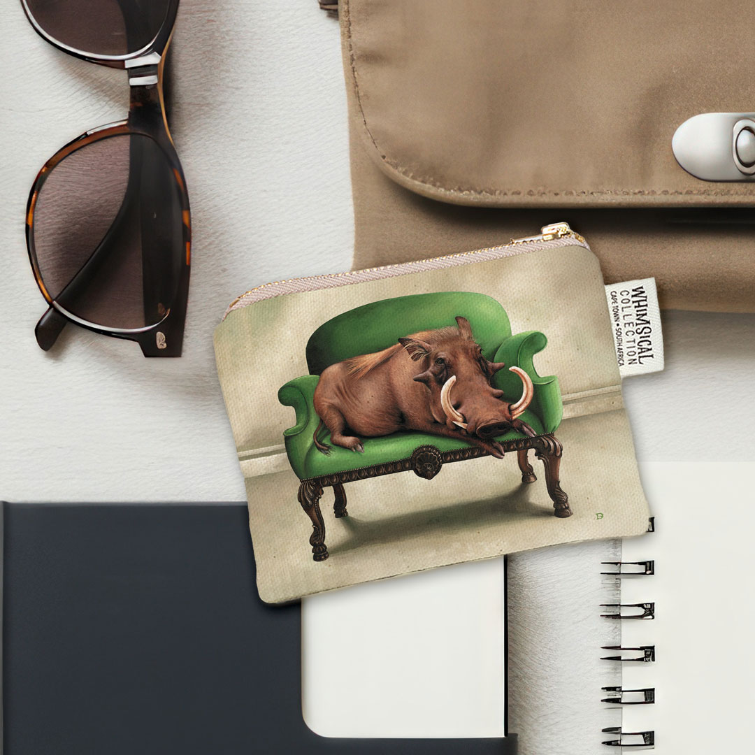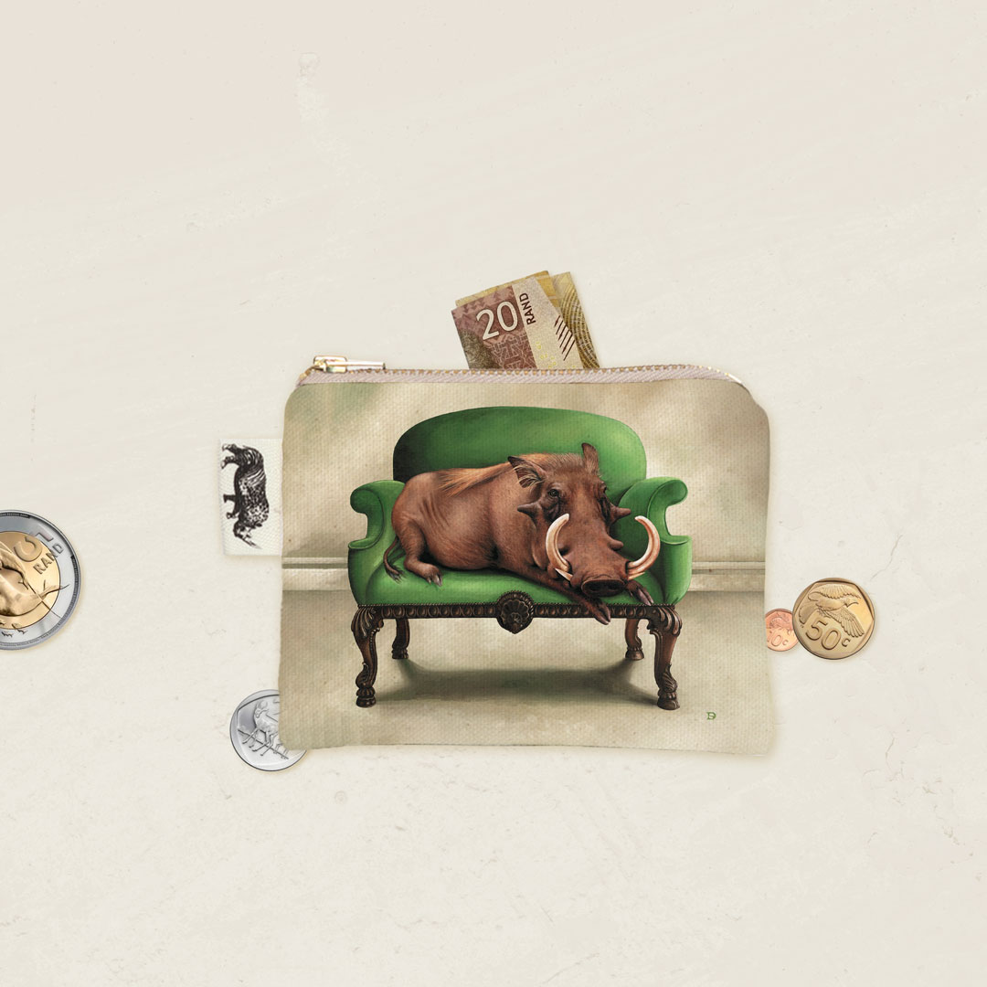 Design: Warthog at Leisure – a warthog relaxing on a green settee