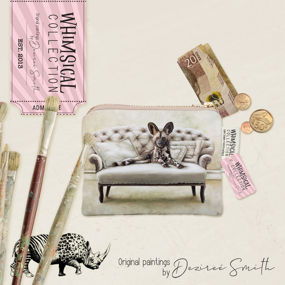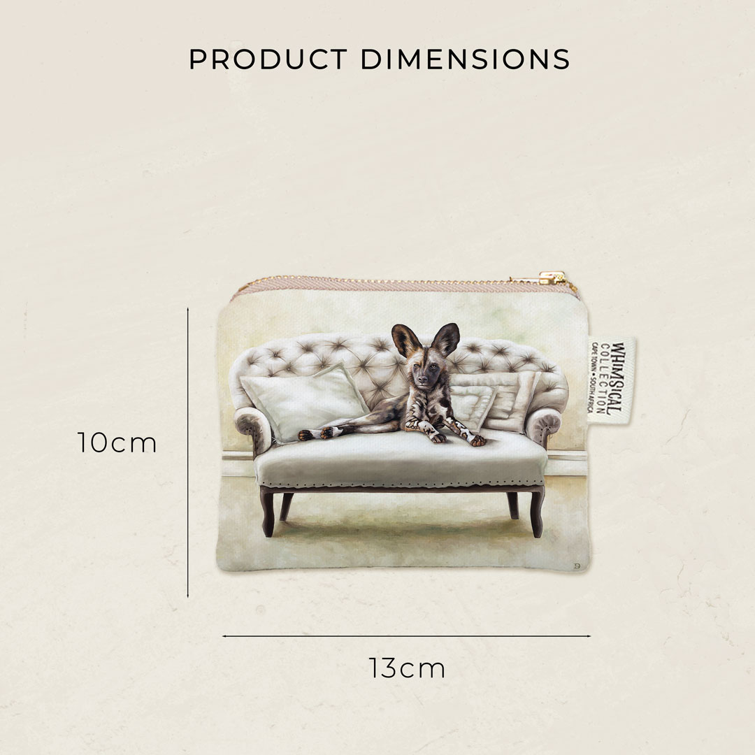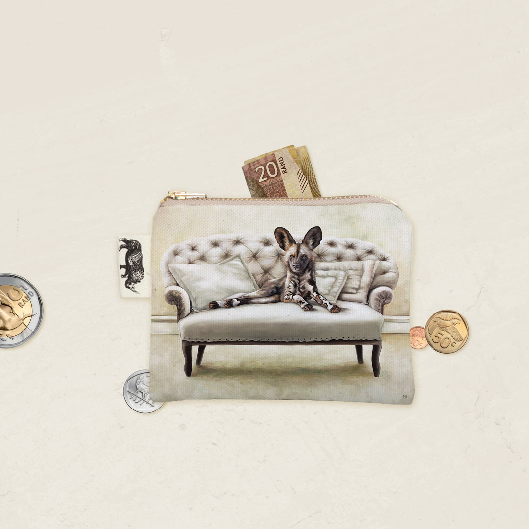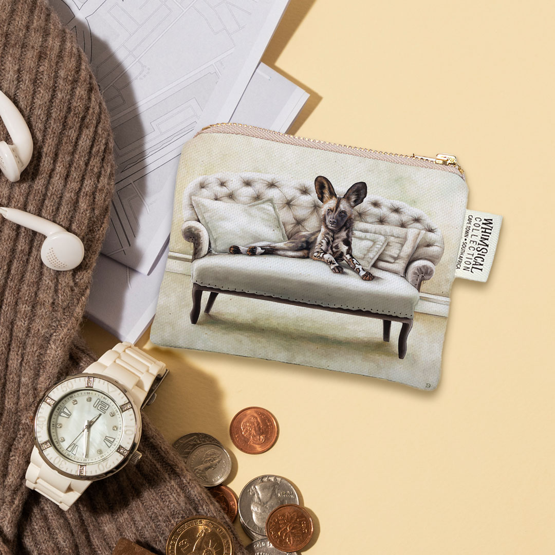 100% Cotton coin purse featuring 'Wild Dog at Leisure' from Whimsical Collection's 'Wildlife at Leisure' range.