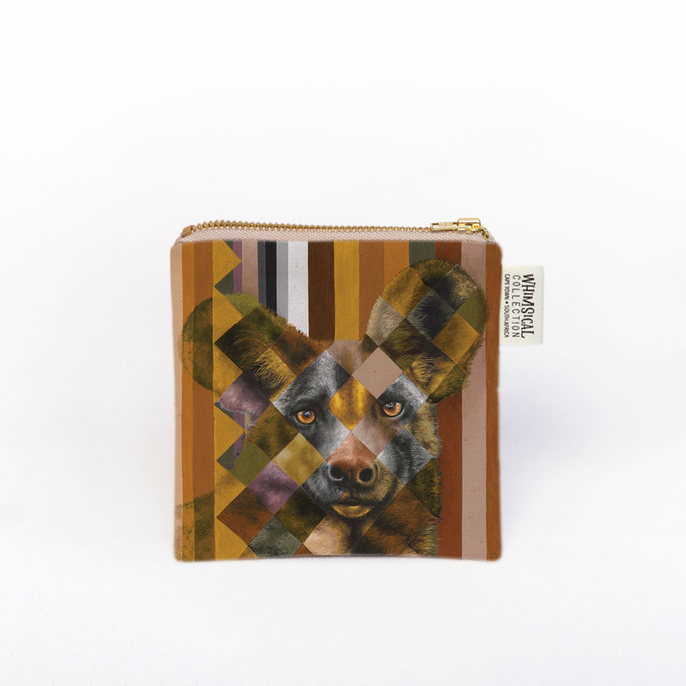 100% Cotton coin purse featuring 'Wild Dog in Shades of Africa' from Whimsical Collection's 'Shades of Africa' range. The Shades of Africa range is a colour adaptation of the original 'Wildlife in Colour' paintings done in oils on canvas by South African artist Dezireë Smith.