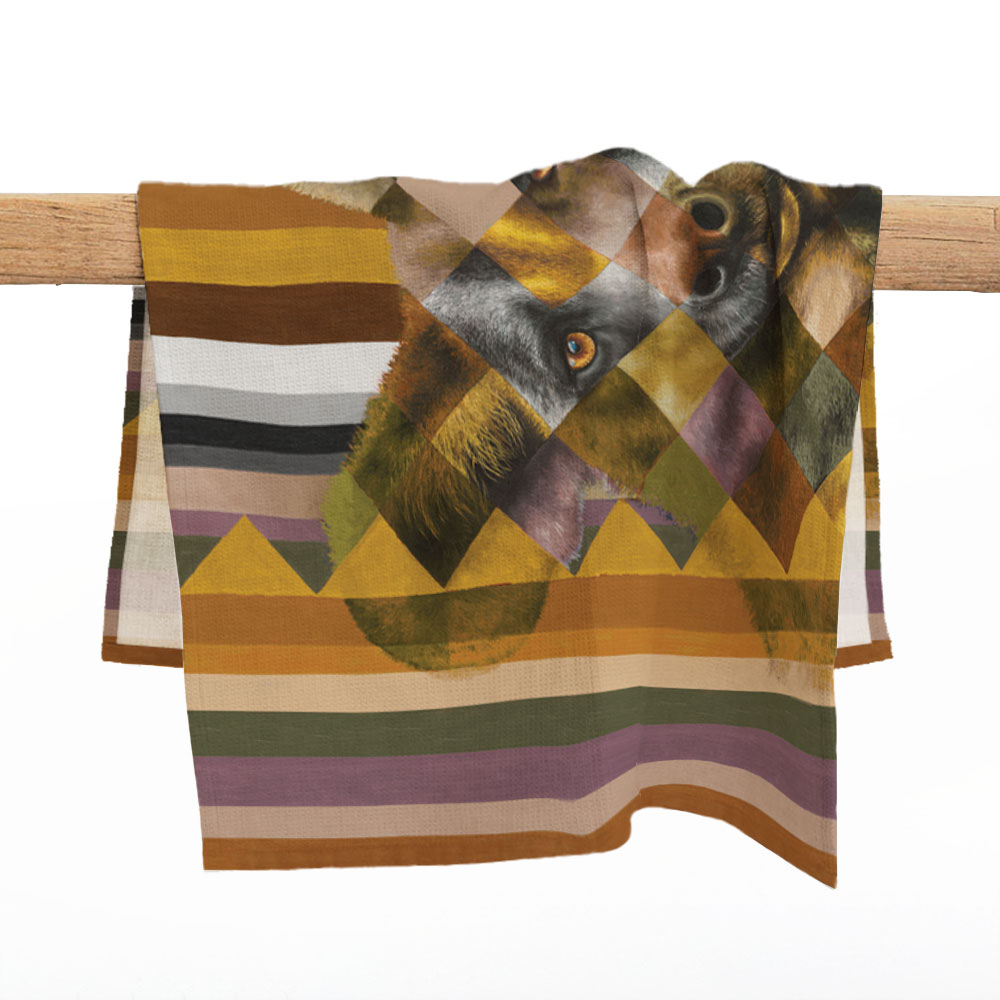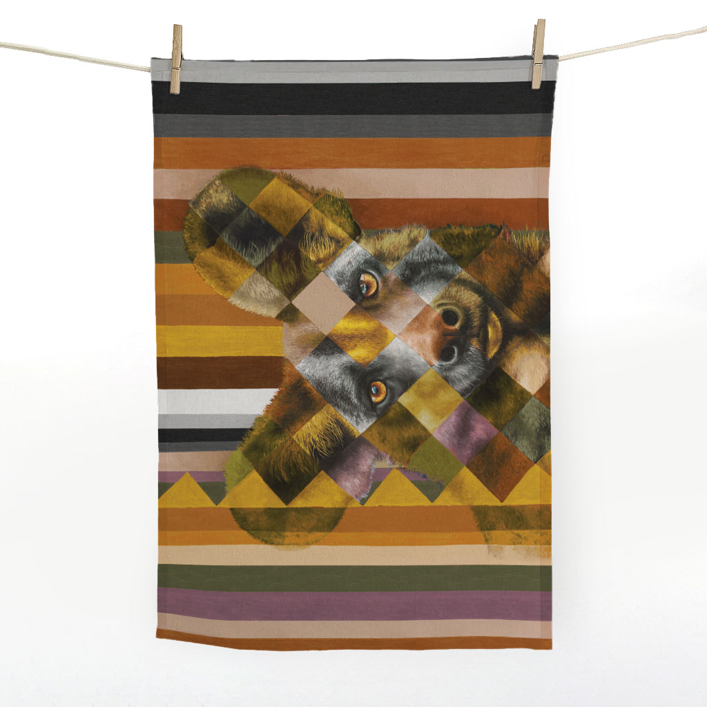 100% Cotton tea towel featuring 'Wild Dog in Shades of Africa' from the 'Shades of Africa' range by Whimsical Collection. The Shades of Africa range is a colour adaptation of the original 'Wildlife in Colour' paintings done in oils on canvas by South African artist Dezireë Smith.