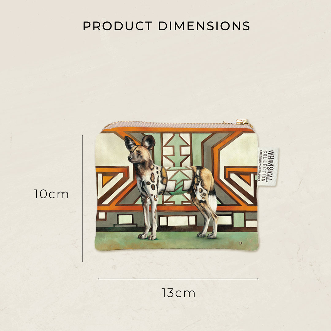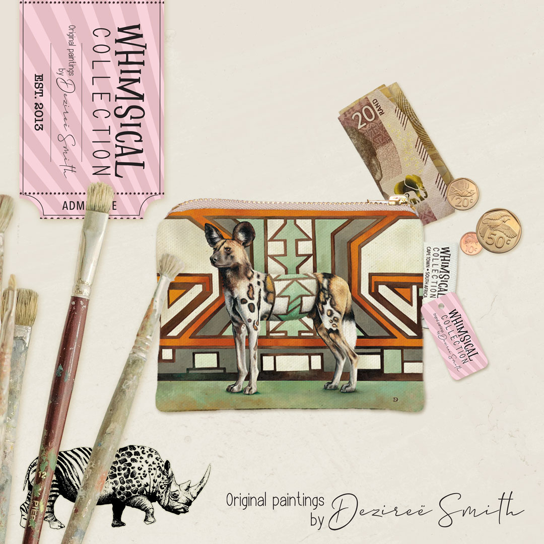 Design: Wild Dog Ndebele – an African painted dog in front of a Ndebele abode