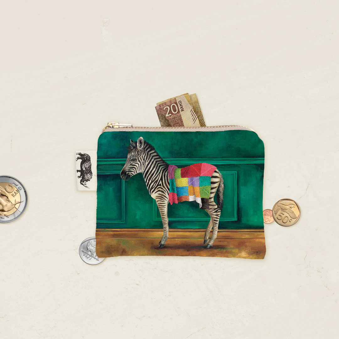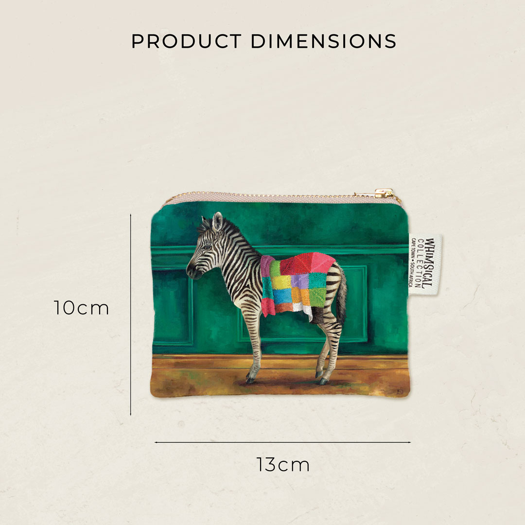 100% Cotton coin purse featuring 'Zebra Warrior' from Whimsical Collection's 'Wild Warriors' range.
